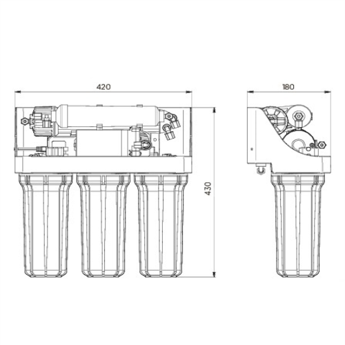- Arıtılmış su temini için musluk ve basınç düşürücü bulunmaktadır.
